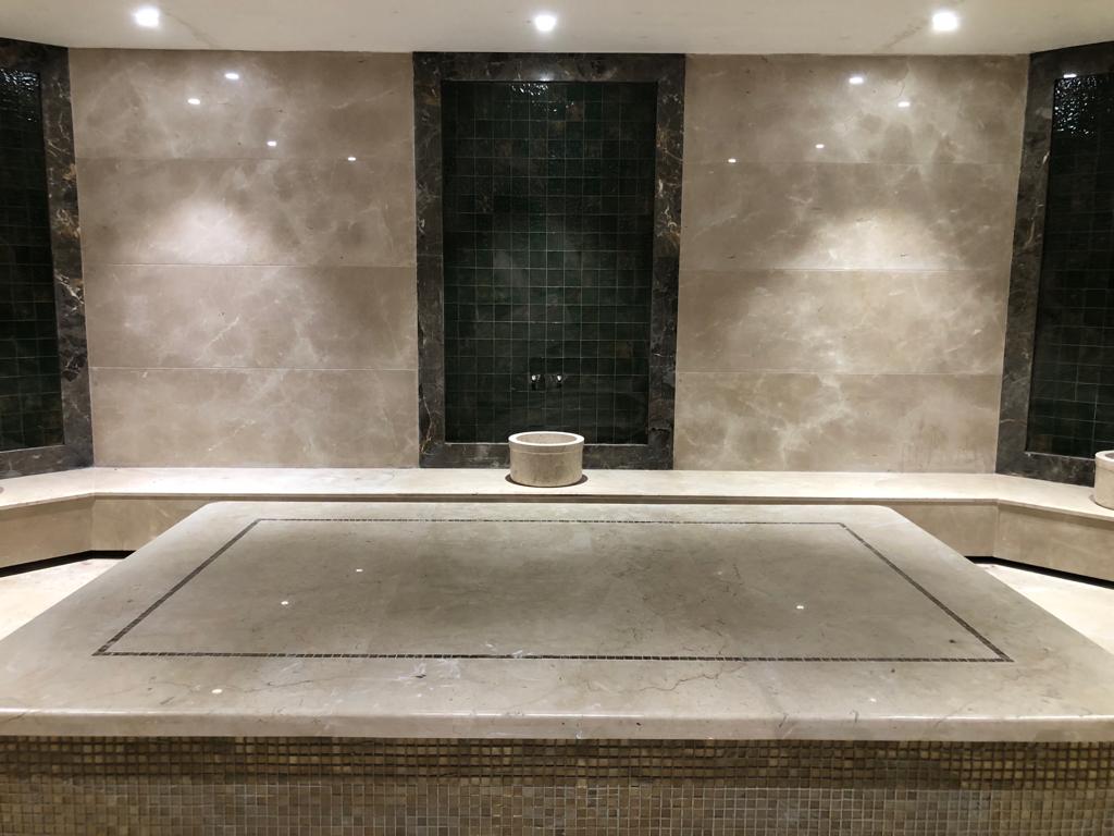Türk hamamı, hem geleneksel hem de modern dokunuşlarla tasarlanabilen özel alanlardır. Hakmer, hamam uygulamalarında mermerin eşsiz doğallığını kullanarak, sıcak suya ve buhara dayanıklı çözümler sunmaktadır. Hem estetik hem de işlevsel olan bu mermerler, hamamda huzurlu bir atmosfer yaratırken, dayanıklı yapılarıyla uzun yıllar kullanım sağlar. Farklı renk seçenekleri ve desenlerle, her türlü hamam tasarımına uyum sağlar.